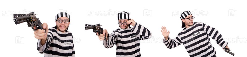 Заключенный с оружием изолирован на белом