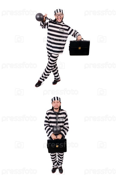 Заключенный тюрьмы изолирован на белом фоне
