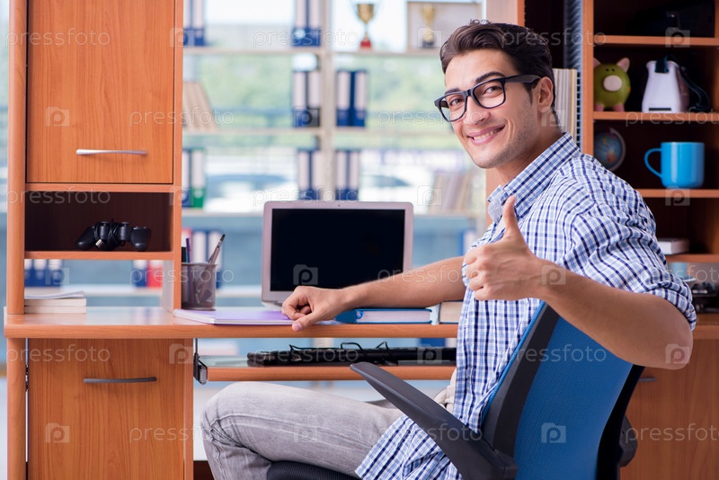 Студент учится дома, готовясь к экзамену