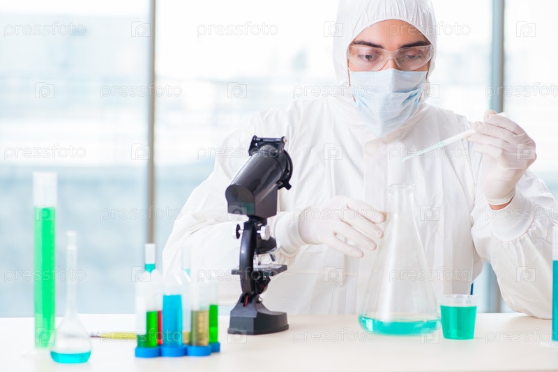Молодой студент-химик, работающий в лаборатории по химическим веществам