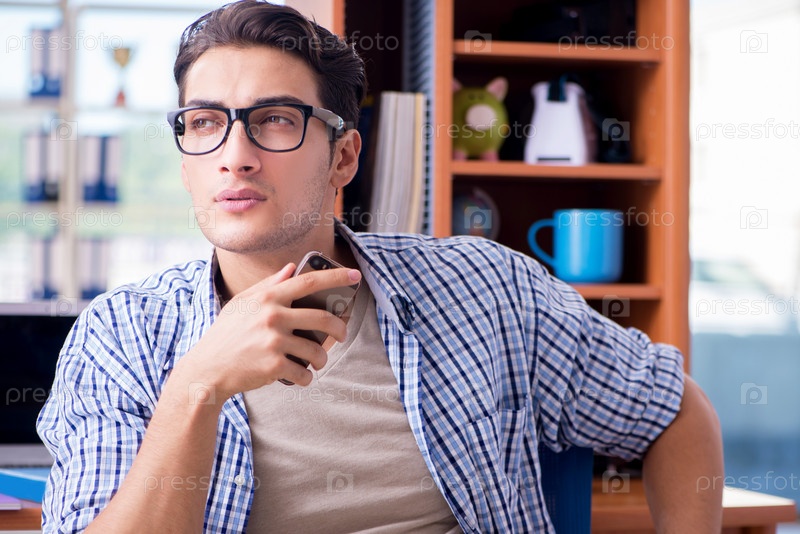 Студент учится дома, готовясь к экзамену