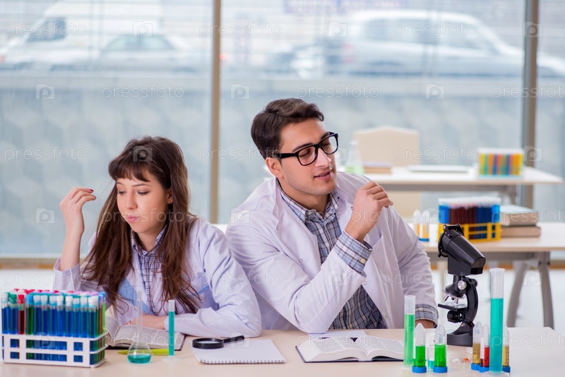 Два химика, работающих в лаборатории, экспериментируют