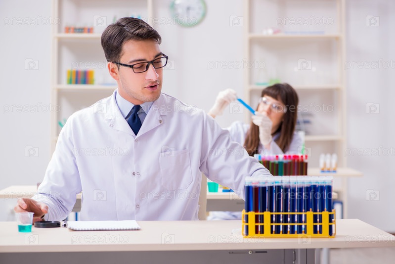 Два химика, работающих в лаборатории, экспериментируют