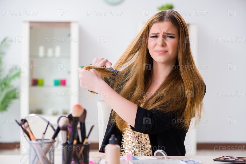 Молодая женщина разочарована своими беспорядочными волосами