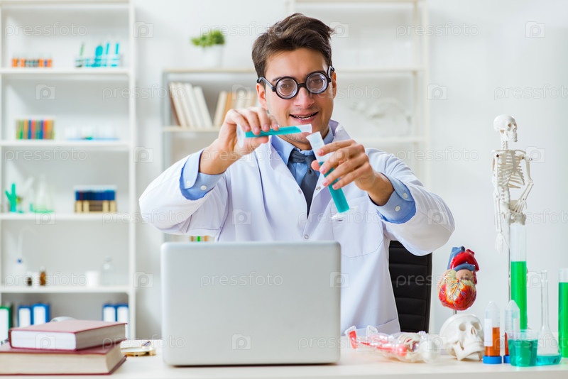 Смешный врач, развлекающийся в больничной лаборатории