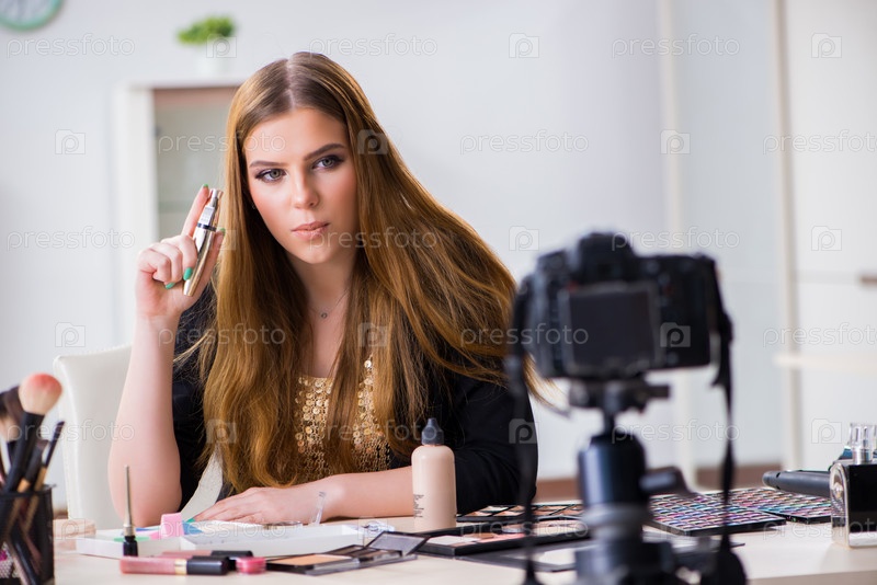 Блогер красоты подает видео для своего блога или влога
