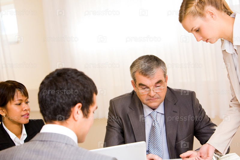 Изображение деловых людей, общающихся на встрече в офисе