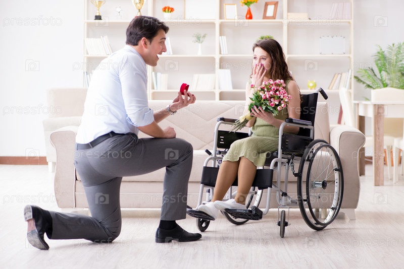 Мужчина делает предложение о браке женщине-инвалиду на инвалидном кресле