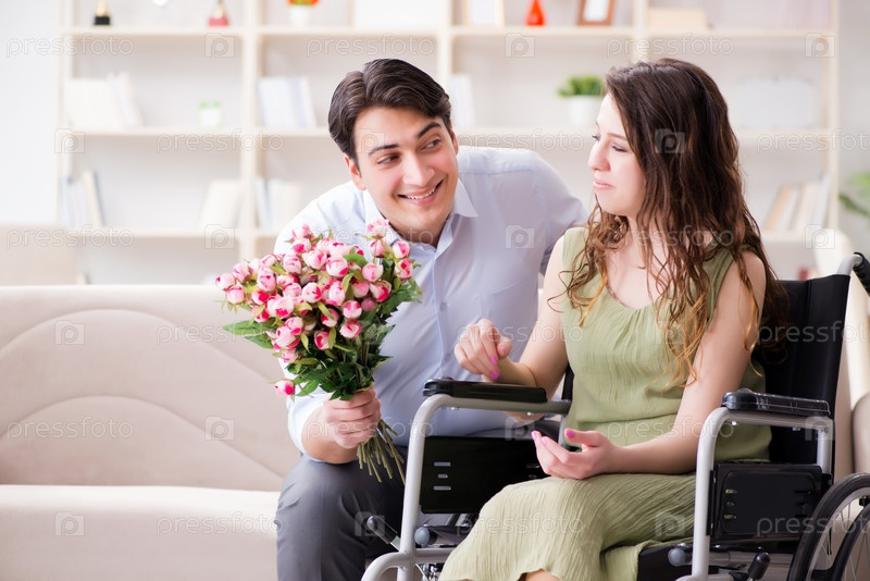 Мужчина делает предложение о браке женщине-инвалиду на инвалидном кресле