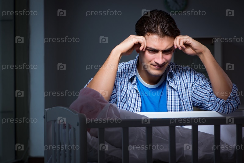 Молодой отец под стрессом из-за того, что ребенок плачет по ночам