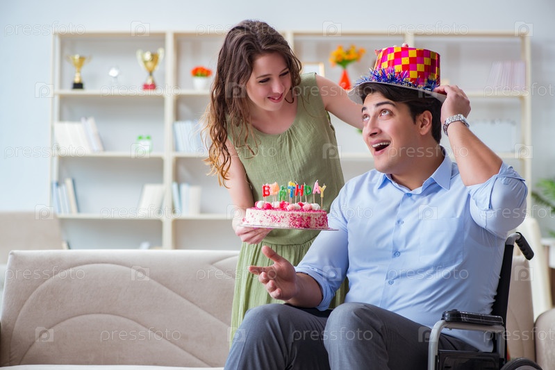 Молодая семья празднует день рождения с инвалидом