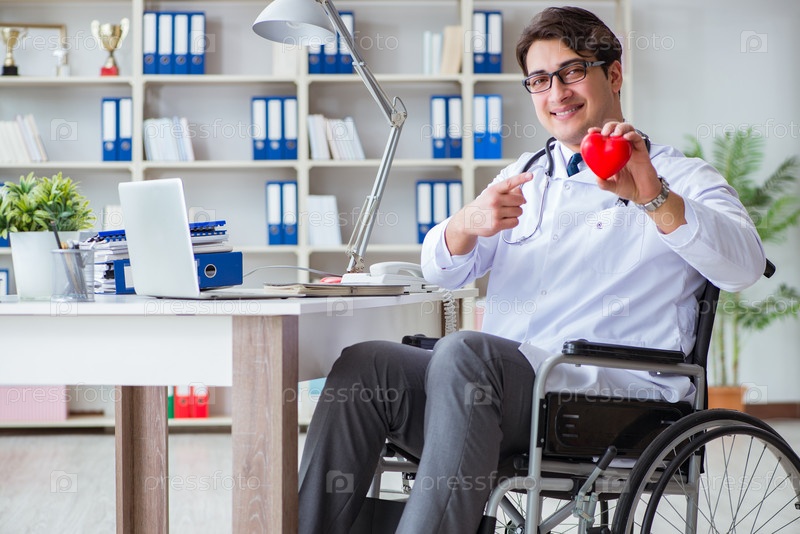 Врач-инвалид на инвалидной коляске работает в больнице