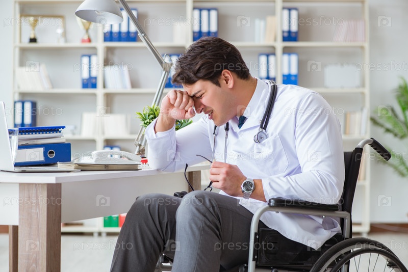 Врач-инвалид на инвалидной коляске работает в больнице