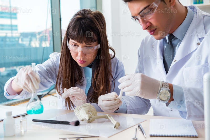 Палеонтологи смотрят на кости вымерших животных