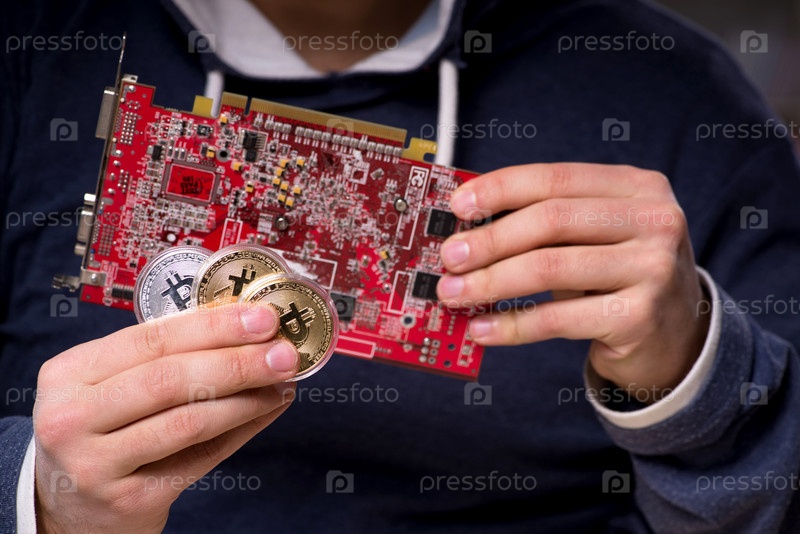 Молодой человек в концепции майнинга биткойнов