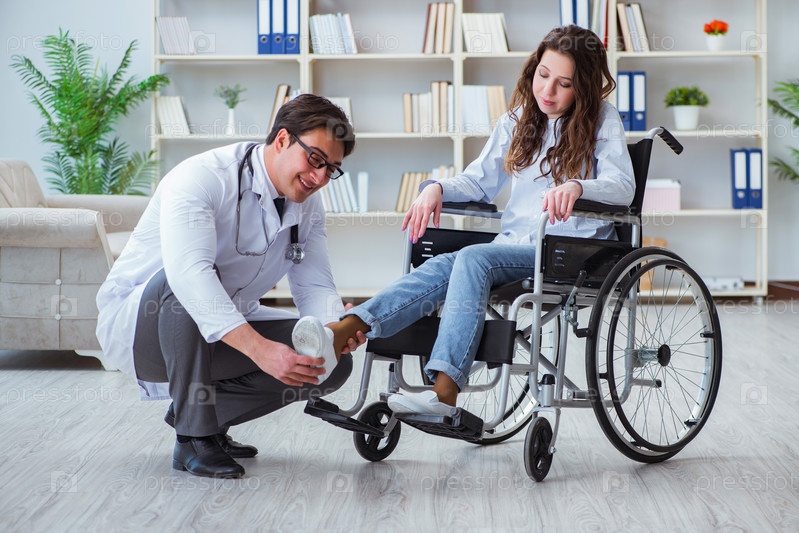 Пациент-инвалид на инвалидной коляске, посещающий врача для регулярного осмотра
