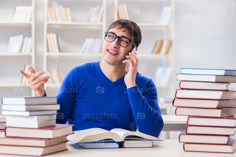 Студент-мужчина готовится к экзаменам в библиотеке колледжа