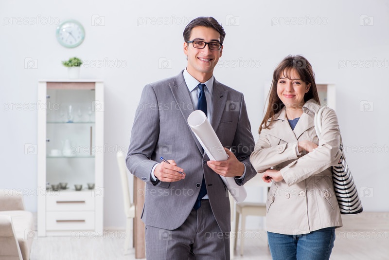 Агент по недвижимости показывает клиенту новую квартиру