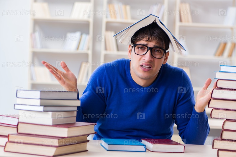 Студент-мужчина готовится к экзаменам в библиотеке колледжа