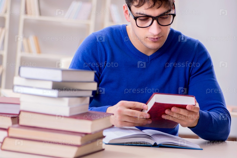 Студент-мужчина готовится к экзаменам в библиотеке колледжа
