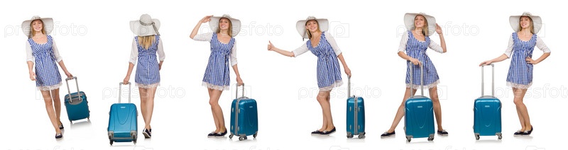 Женщина, готовая к летнему путешествию изолирована на белом