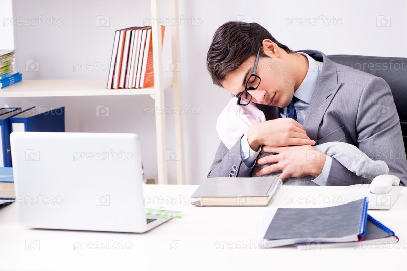 Бизнесмен ухаживает за новорожденным ребенком в офисе