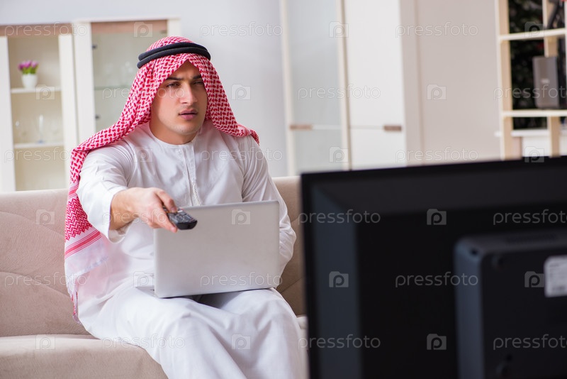 Арабский бизнесмен смотрит телевизор дома