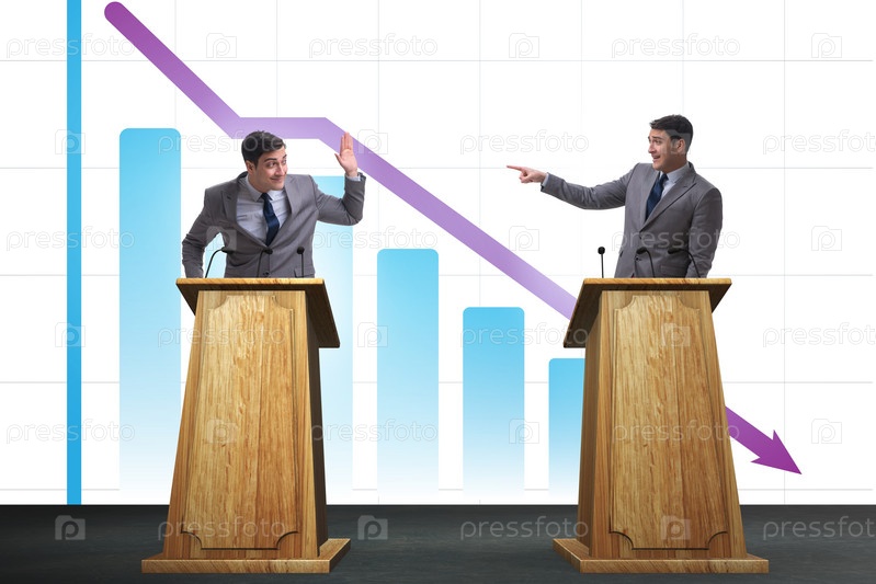 Бизнесмен выступает с речью на трибуне в бизнес-концепции