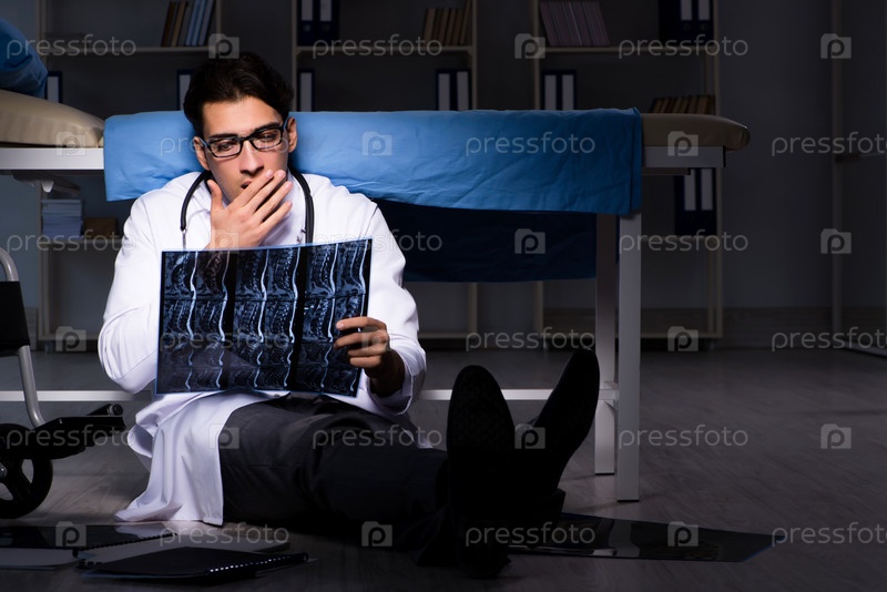 Врач работает в ночной смене в больнице после долгих часов