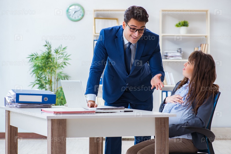 Беременная женщина борется в офисе и получает коллегу он
