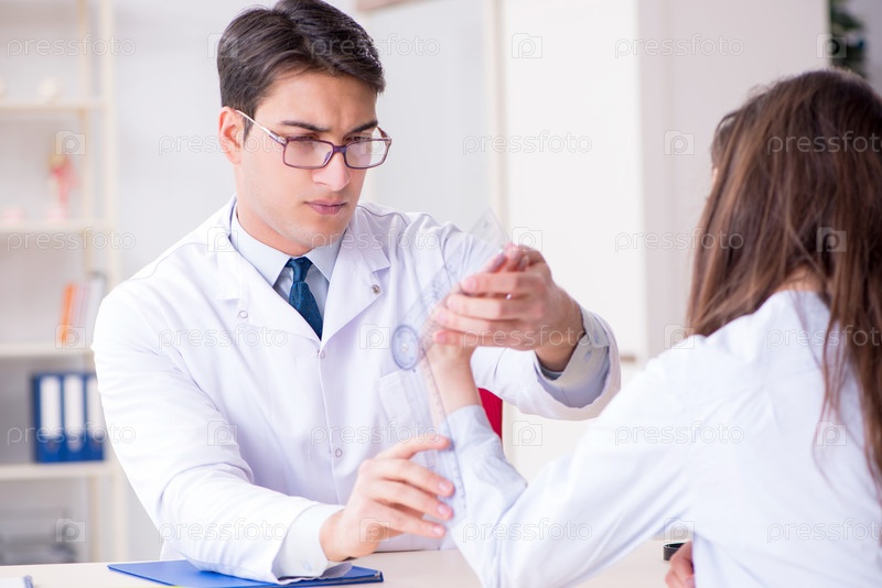 Врач проверяет гибкость суставов пациентов с помощью гониметра