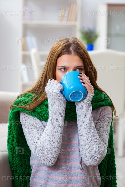 Больная женщина, страдающая гриппом дома