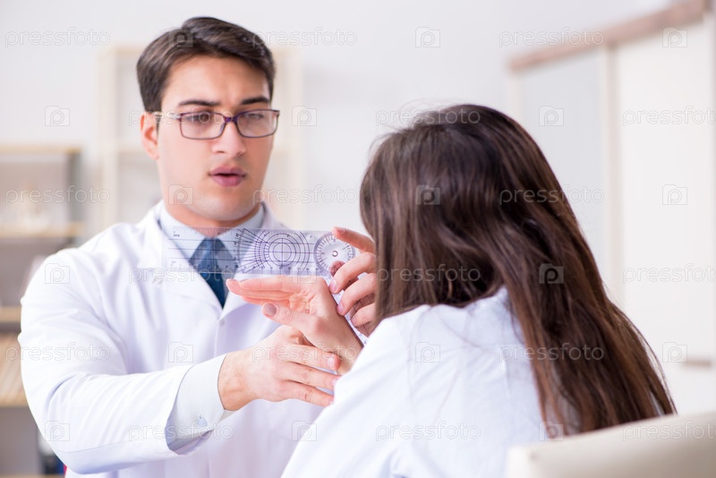 Врач проверяет гибкость суставов пациентов с помощью гониметра