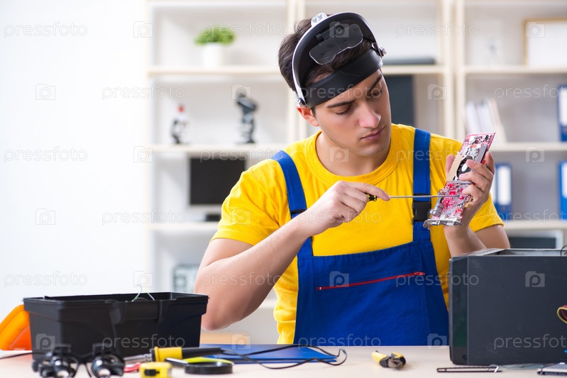 Техник по ремонту компьютеров, отремонтирующий оборудование