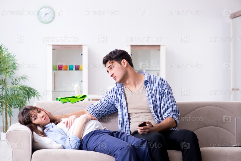Беременная женщина с мужем дома
