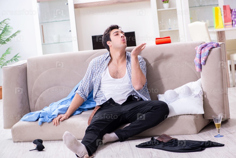 Мужчина с беспорядком дома после вечеринки в доме