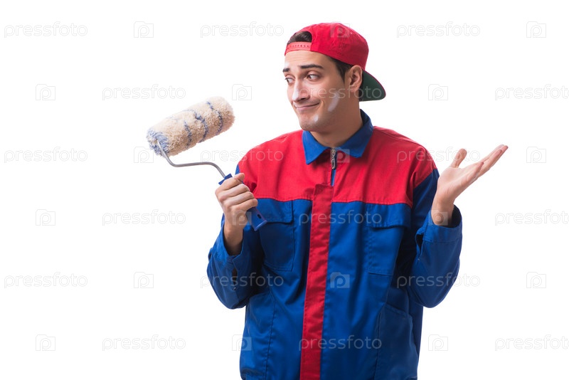 Молодой художник-подрядчик изолирован на белом фоне