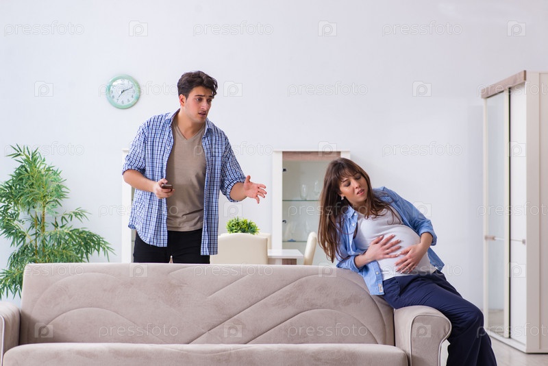 Беременная женщина с мужем дома