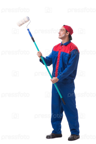 Молодой художник-подрядчик изолирован на белом фоне