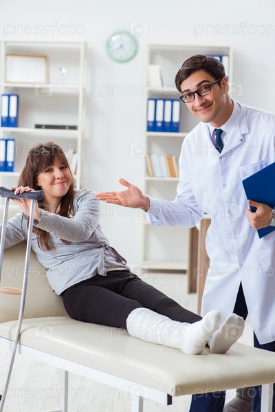 Врач осматривает пациента со сломанной ногой