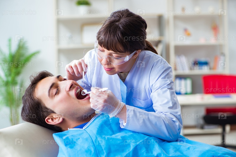 Женщина-стоматолог с мужским пациентом в больнице