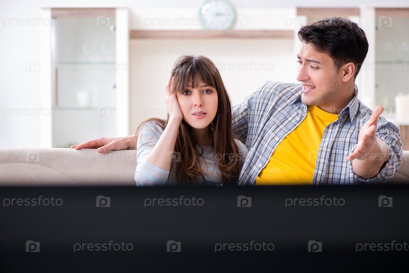 Пара смотрит телевизор дома