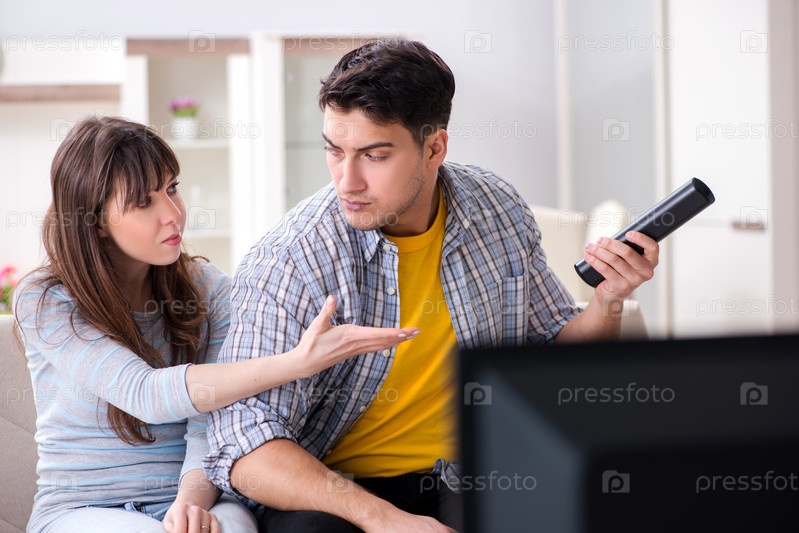 Пара смотрит телевизор дома