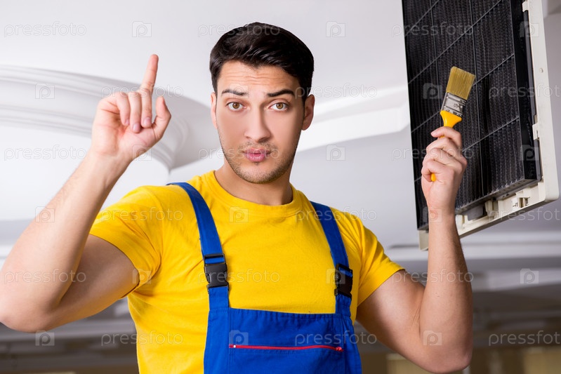 Ремонтник, ремонтирующий потолок кондиционера