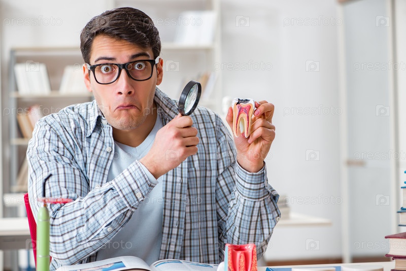 Студент-медик учится стоматологии в классе