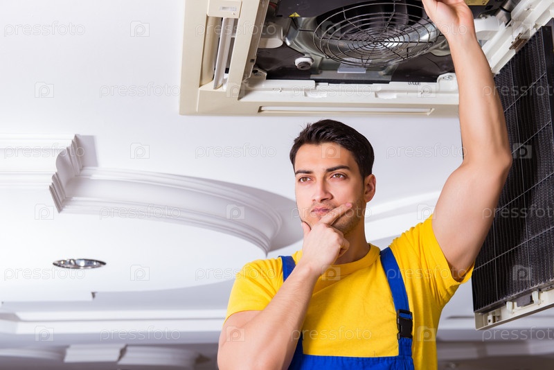 Ремонтник, ремонтирующий потолок кондиционера