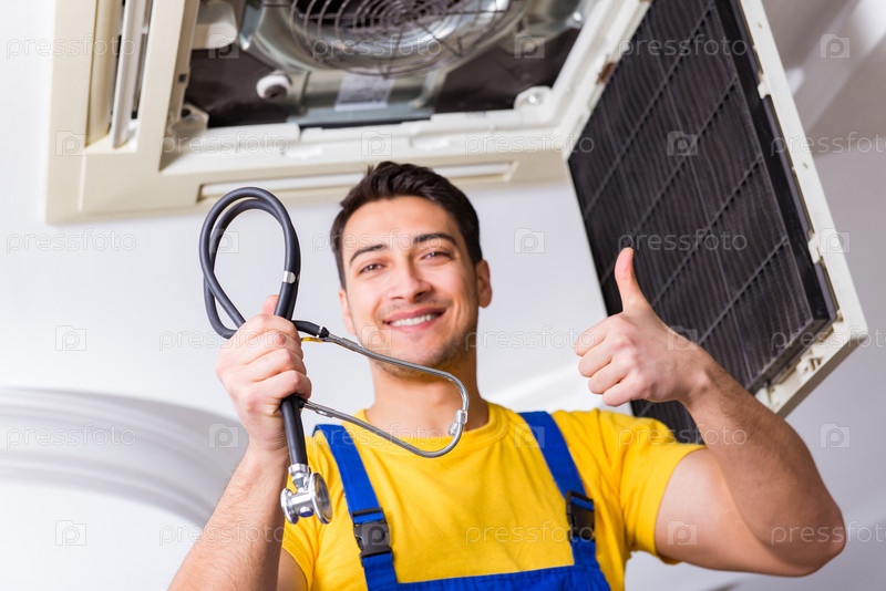Ремонтник, ремонтирующий потолок кондиционера