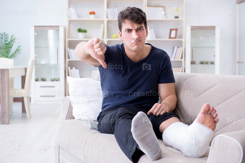 Мужчина со сломанной ногой восстанавливается дома