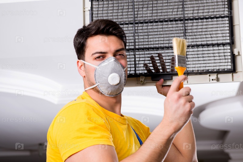 Ремонтник, ремонтирующий потолок кондиционера