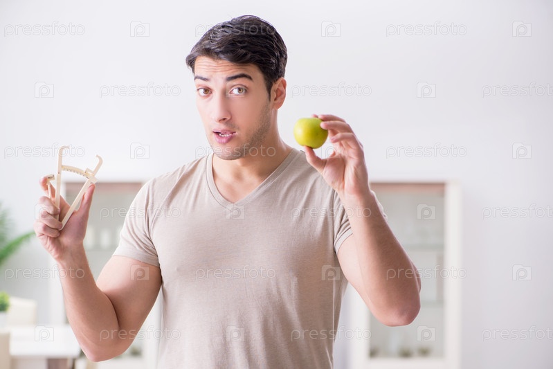 Мужчина измеряет жировую массу тела калибровками
